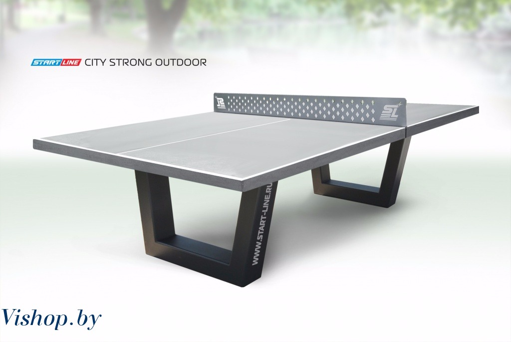 Многие поклонники настольного тенниса предпочитают играть на свежем воздухе, будь то загородный участок или парк досуга и отдыха. Стол для такого вида развлечений должен быть очень прочным и качественным.Основание стола City Strong Outdoor выполнено с применением армированного бетона, что обеспечивает его стойкость перед неблагоприятными воздействиями. Из-за своего внушительного веса - 890 кг, стол не требует дополнительного крепления к поверхности, к столу прилагается подробная инструкция по сборке. Столешница теннисного стола City Strong Outdoor изготовлена из супер прочного камня Super Stone, покрытого специальной пропиткой. Камень стойко выдерживает любые погодные условия и перепады температуры, не деформируется от сильных ударов, а наоборот делает их более точными. Также стол City Strong Outdoor оснащен встроенной металлической перфорированной сеткой толщиной 3 миллиметра, что защищает стол от актов вандализма.