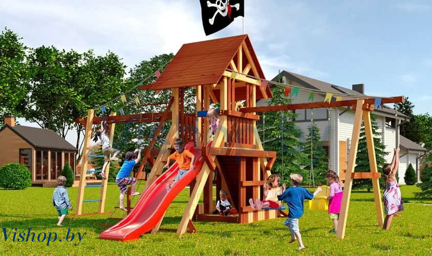 Шторм-трап, штурвал, канат и флажковая гирлянда позволят почувствовать себя капитаном корабля, борющегося со штормом.