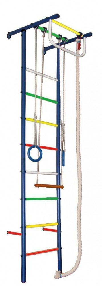 ДСК Юнга 3М Вертикаль подходит для занятий физкультурой в домашних условиях детям старше 3 лет. Крепится к стене, есть упор в пол. Комплекс выдерживает нагрузку до 90 кг.
