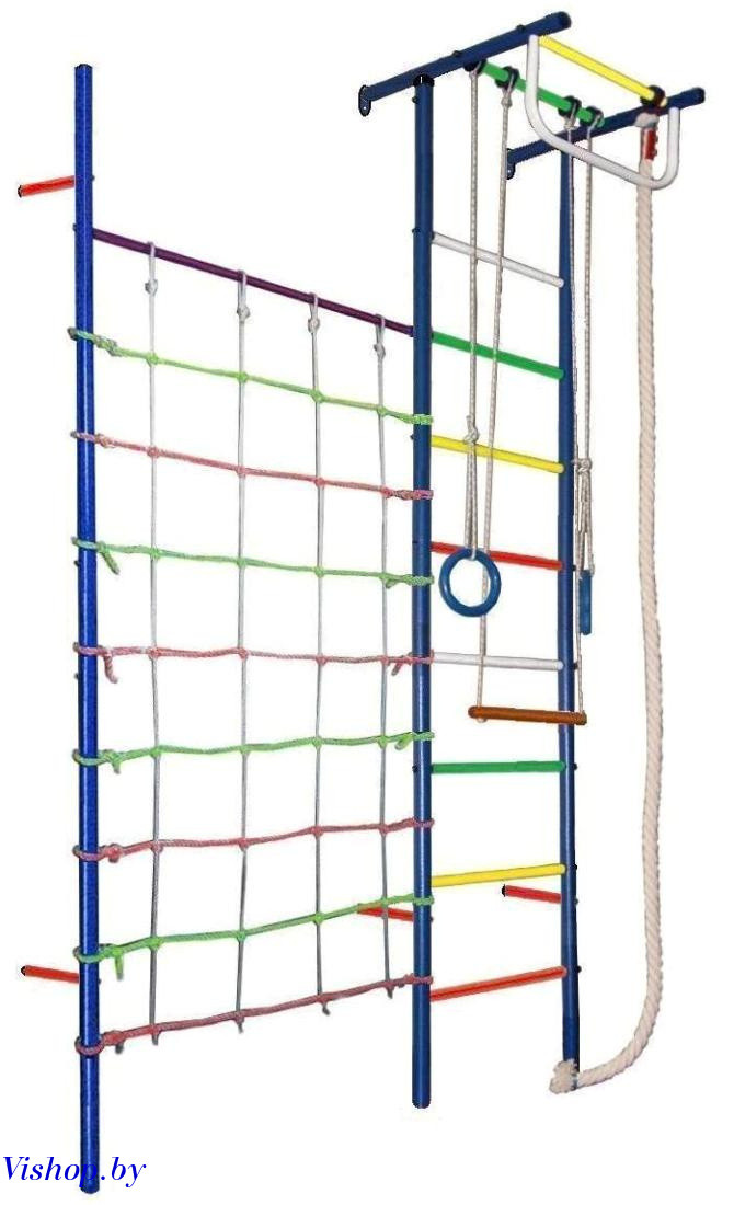 ДСК Юнга 4М Вертикаль подходит для занятий физкультурой в домашних условиях детям старше 3 лет. Крепится к стене, есть упор в пол. Комплекс выдерживает нагрузку до 120 кг.